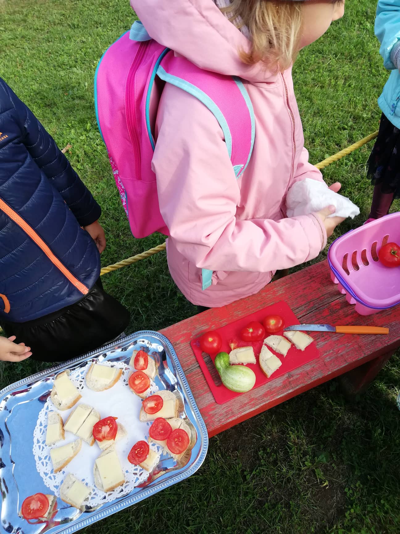 Moliūgas ir Morka aplankė vaikus su linksmais žaidimais, užduotėlėmis, dainelėmis. Pasivaišino pyragu.