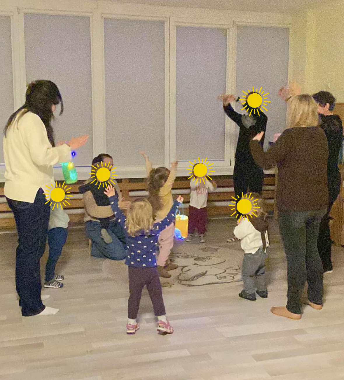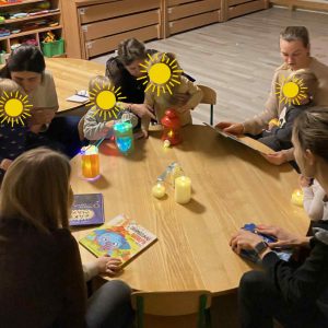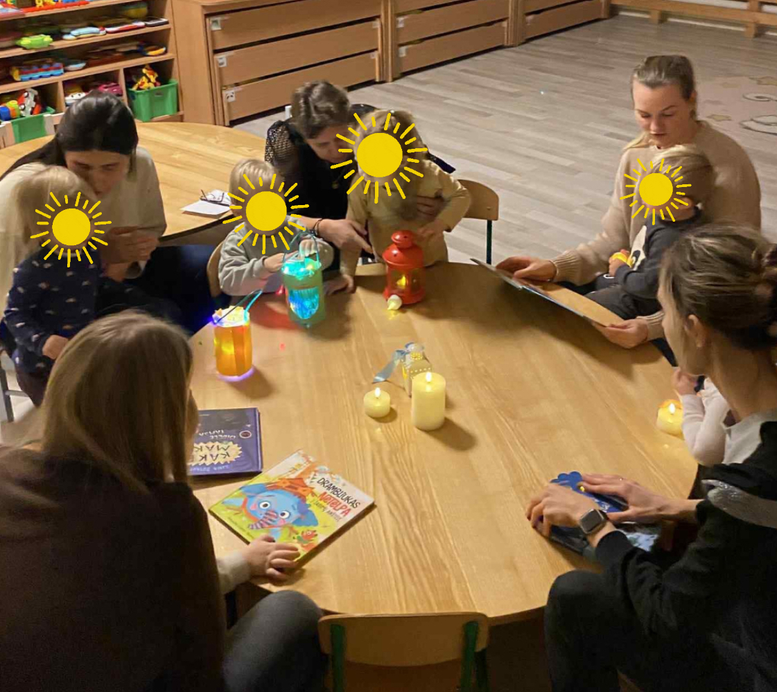 Jaukia žibintų vakarone džiaugėsi pačios mažiausios – viščiukų grupės nariai. Už tai nuoširdžiai dėkojame Prano mamytei Jurgitai, Lea ir Mateo mamytei Agnei bei Mariaus mamytei Gintarei ir, žinoma, šilumos skleidėjoms bei puoselėtojoms mokytojoms Angelei ir Renatai, padėjėjai Daliai!